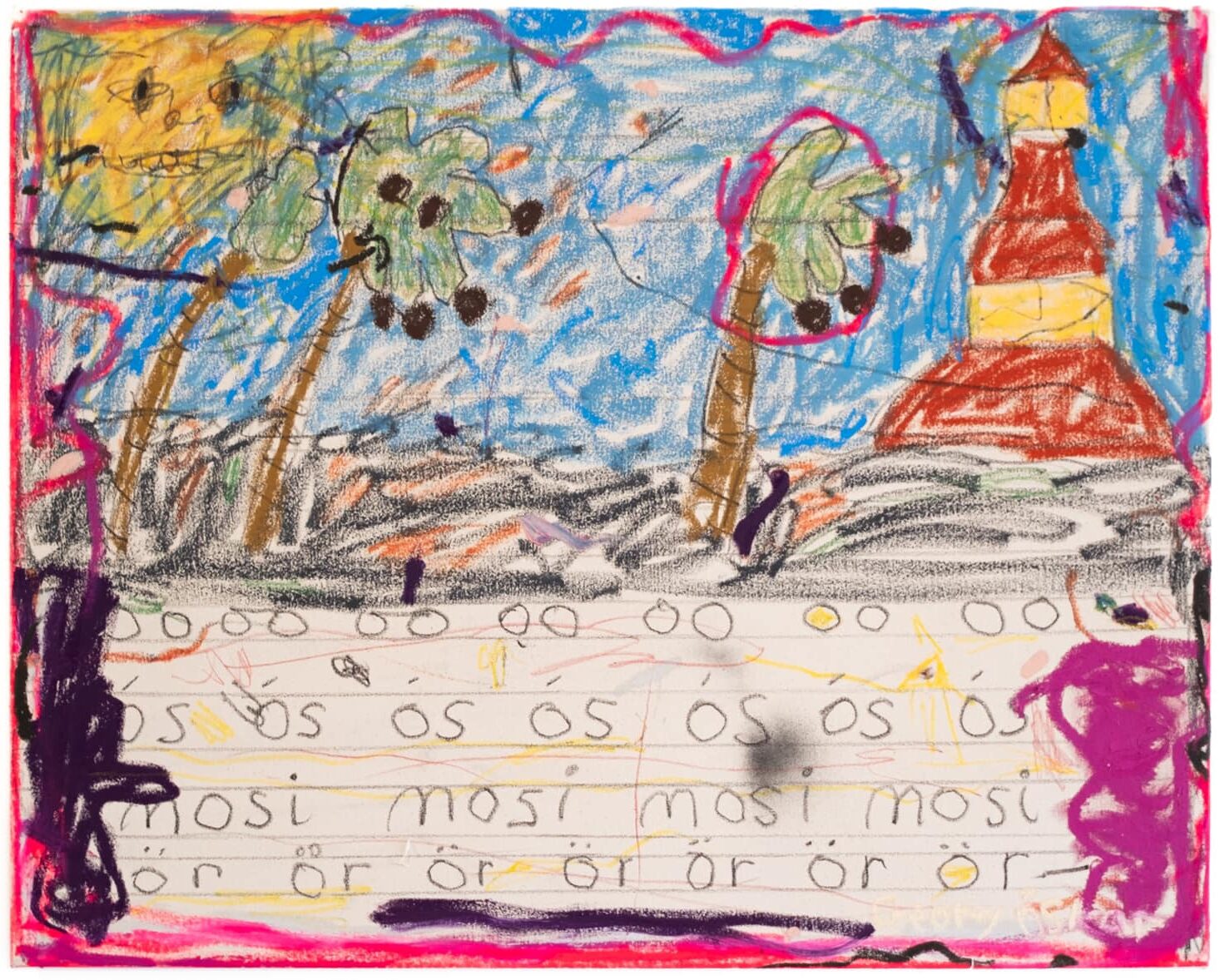 Olía, sprey og China marker á striga