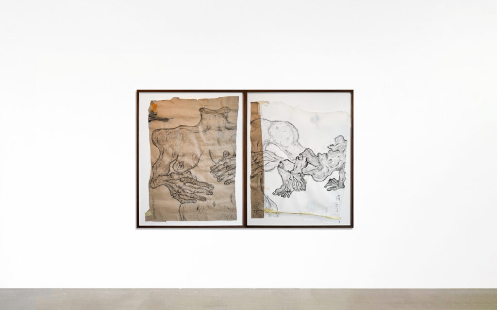 graphite á pappír rammað í hnotu með lista, kartoni og spegilfríu gleri