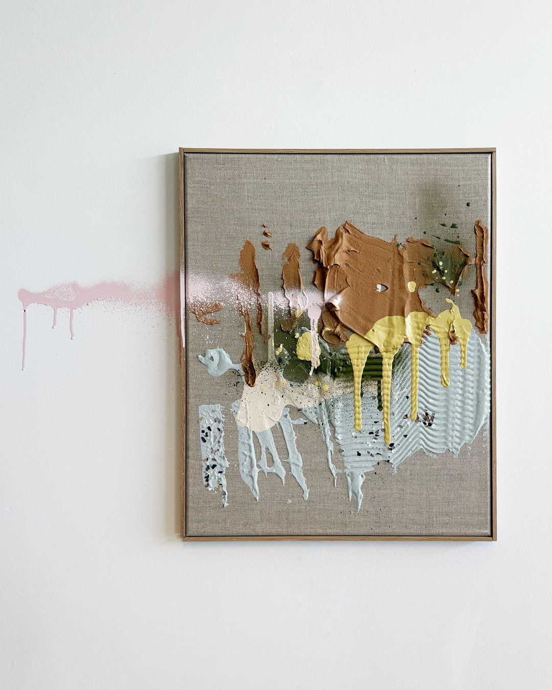 Steinefnaspartl, lakk, sprey, akrýl og málningarflögur á hör