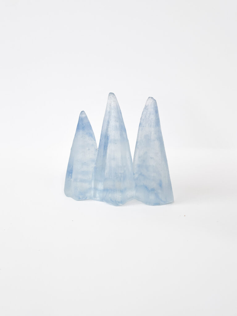 Brynhildur Þorgeirsdóttir (f. 1955) hefur alla tíð unnið með steinsteypu og gler. Í skúlptúrum sínum, sem eru steyptir með steinsteypu, myndast samtal á milli glersins og sandsins því form glersins leiðir áfram form steypunnar. Þannig lætur hún efnið ráða ferlinu og leyfir verkinu að tala til sín. Hún steypir gler í sand eins og hraunflæði og blæs í gler eins og planta sem vex. Brynhildur hermir ekki eftir náttúrunni, hún vinnur einfaldlega eins og hún.