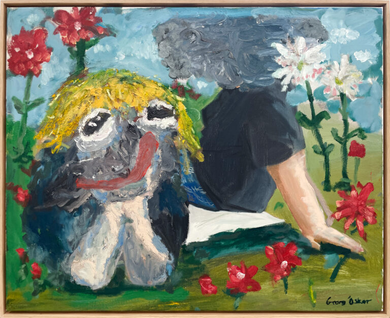 Litaður blýantur á þykkan pappír í ramma listamannsins