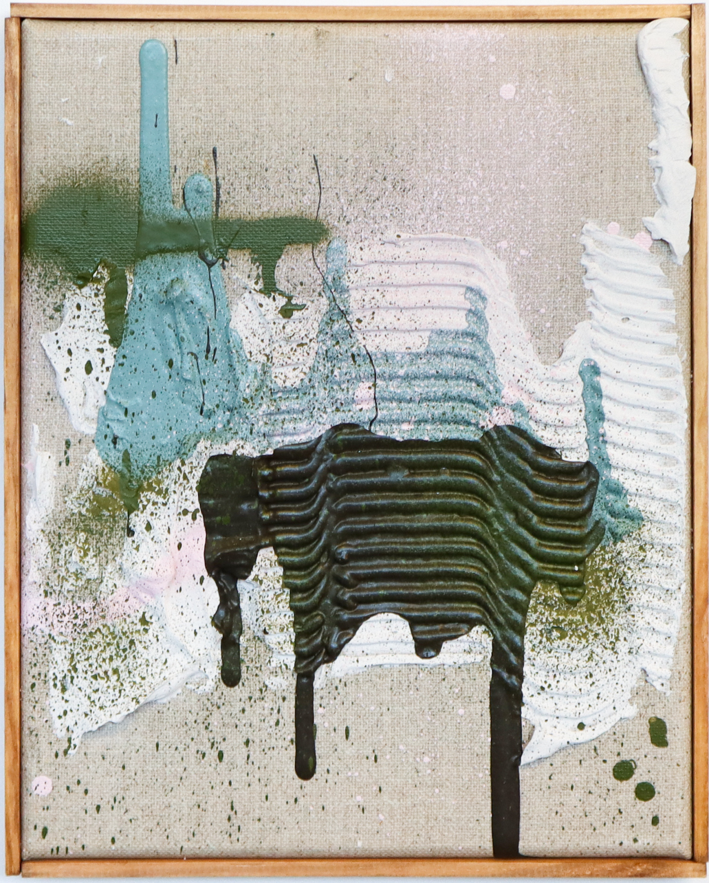 Steinefnaspartl, lakk, sprey, akrýl og málningarflögur á hör