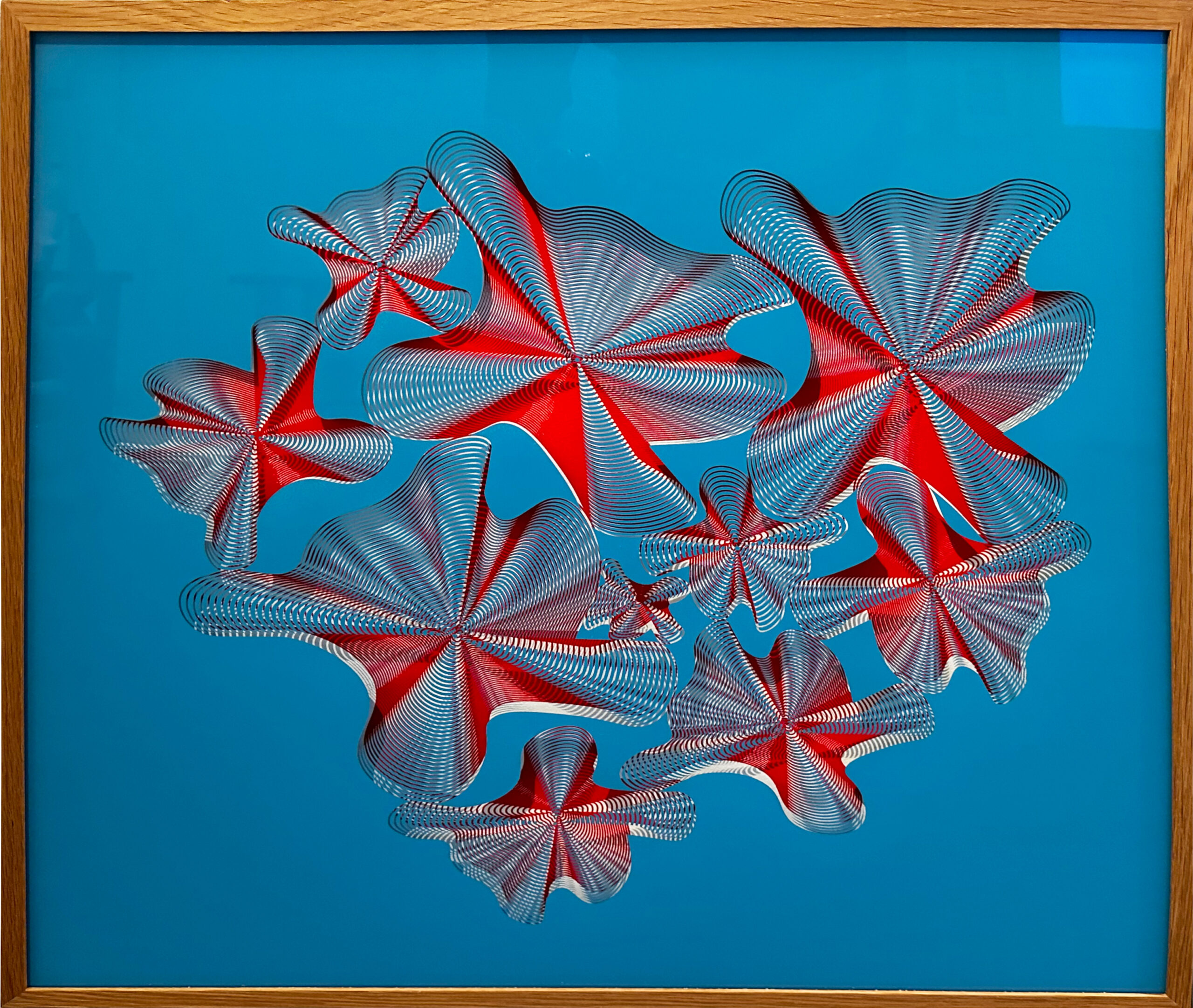 Silkiþrykk á pappír og gler í eikarramma