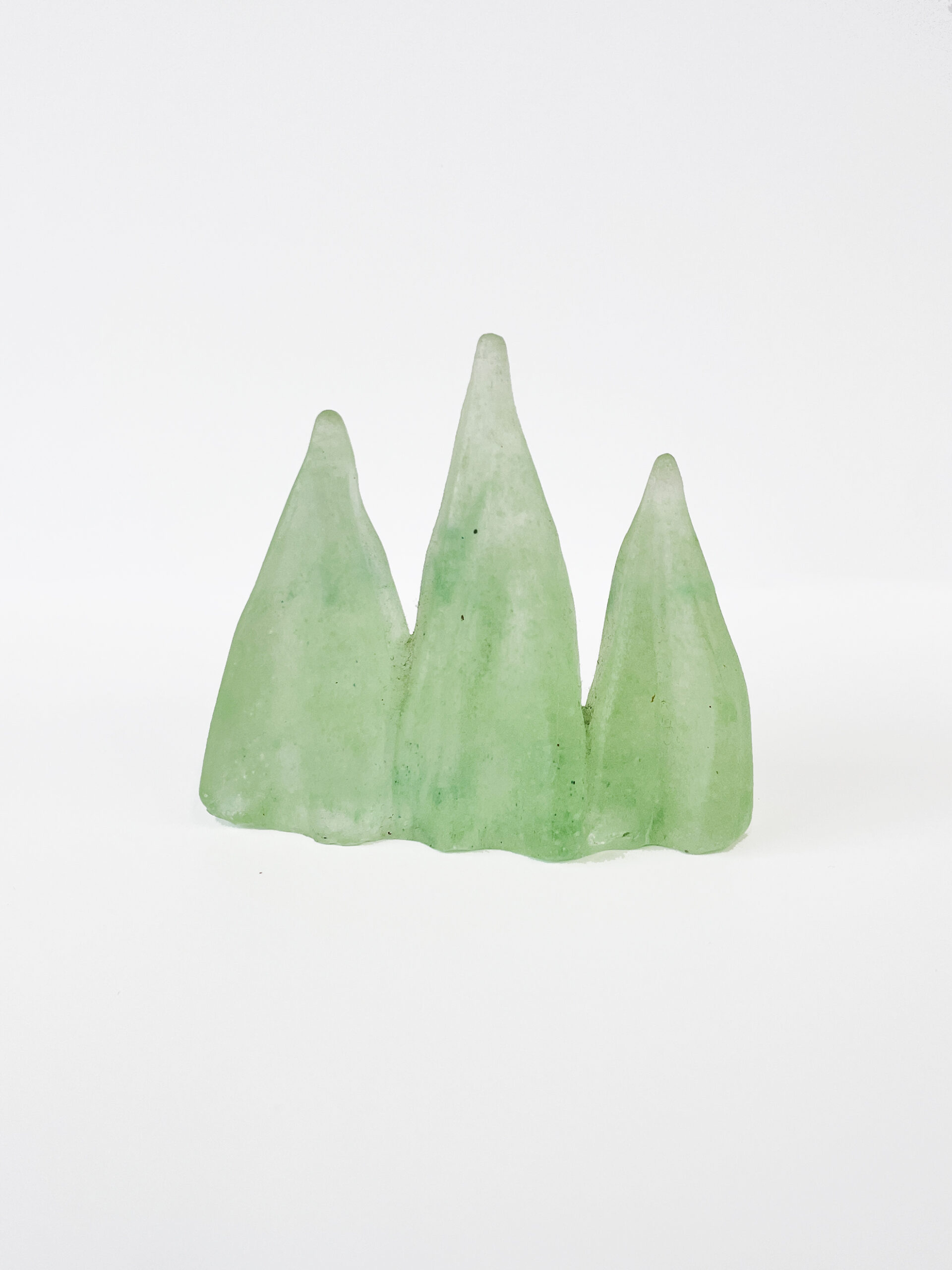 Brynhildur Þorgeirsdóttir (f. 1955) hefur alla tíð unnið með steinsteypu og gler. Í skúlptúrum sínum, sem eru steyptir með steinsteypu, myndast samtal á milli glersins og sandsins því form glersins leiðir áfram form steypunnar. Þannig lætur hún efnið ráða ferlinu og leyfir verkinu að tala til sín. Hún steypir gler í sand eins og hraunflæði og blæs í gler eins og planta sem vex. Brynhildur hermir ekki eftir náttúrunni, hún vinnur einfaldlega eins og hún.