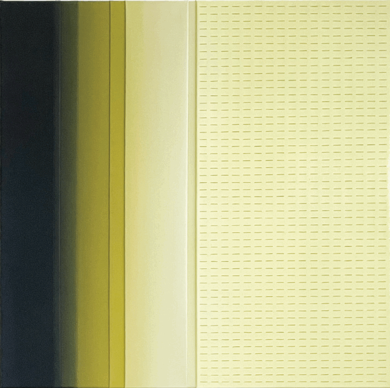 Litaður blýantur á þykkan pappír í ramma listamannsins